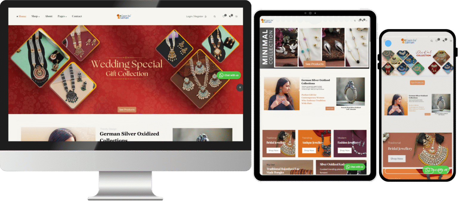 Operating on the Shopify platform, Gaon Ka Saman serves customers across India with a diverse collection of affordable traditional jewelry, featuring significant discounts and seasonal offers to attract price-conscious shoppers.